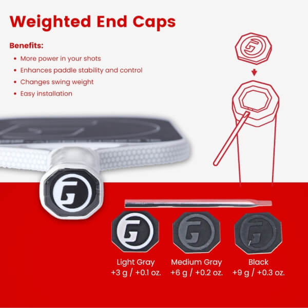 A perfect blend of control and power with the RCF Obsidian pickleball paddles! Crafted with the highest quality Toray T700 Raw Carbon Fiber to obtain the most performance from the face of the paddle. Each GAMMA RCF Obsidian will feature the ability to swap end cap weights, to give every player a personalized feel on the court. Simply flip the end cap off and add your desired end cap weight for more power or more control.