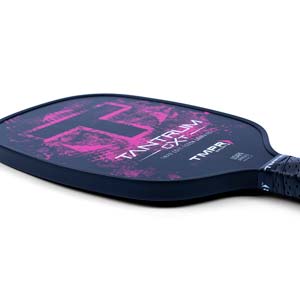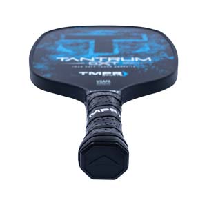 The Tantrum GXT is a high-performance paddle for the player who wants extra control at the net. Made with a unidirectional graphite face and honeycomb polymer core, the Tantrum GXT is a middleweight paddle with an extra-soft touch. It has a 5" handle length and 4.25" handle circumference. The Tantrum GXT’s rounded shape creates a larger sweet spot than traditional square-shaped paddles.